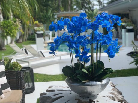 36″ Casa Moderna Black Tinted Glass Plate Planter with white Phalaenopsis orchids